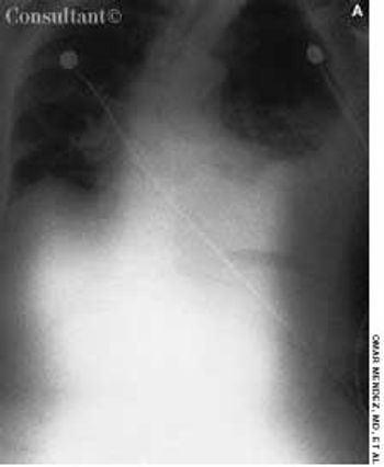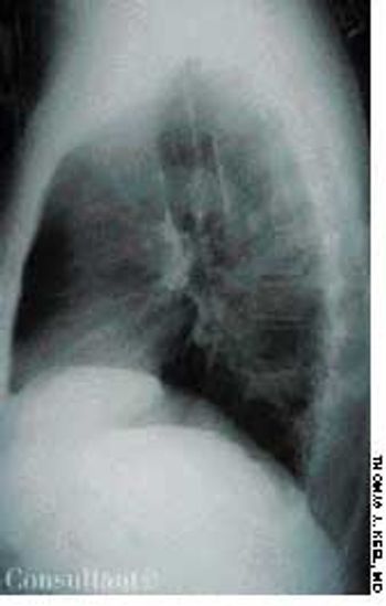 A 40-year-old man was being treated as an outpatient with inhaled corticosteroids and bronchodilators for a presumed diagnosis of bronchial asthma. Worsening episodes of shortness of breath during the past few months sent him to the emergency department for a second opinion.
