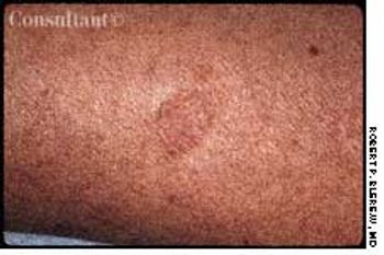 Concern about this flat, tan, atrophic, well-marginated, dime-sized lesion prompted a 44-year-old woman to seek medical advice. The lesion, which was mildly pruritic, had appeared 2 months earlier.