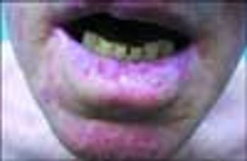 A 68-year-old white man complained of a painful "raw" lip that had gradually developed over several years. Multiple, discrete, small erosions were noted on the lower lip, some of which were covered with an adherent yellow scale/crust. Removal of the scale/crust led to bleeding. None of the involved areas were indurated; regional lymph nodes were normal.