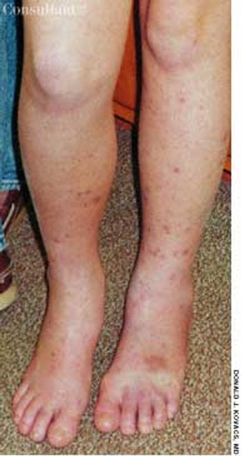 Ten days after ballet practice, a 9-year-old girl noticed a nonpruritic, petechial rash on her lower legs. Swelling of the ankles and knees was also apparent. The patient was afebrile, otherwise healthy, and had no abdominal pain. There was no family history of blood dyscrasias. The patient was taking no medications.