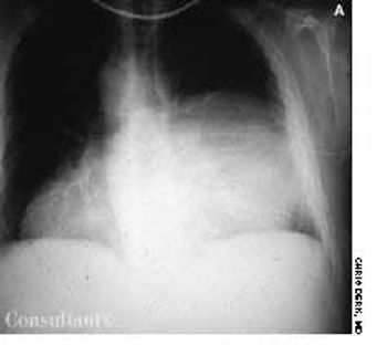 Shortness of breath and cough were the sole complaints of a 49-year-old man who had no significant medical history. He was given antibiotics for a possible bronchitis. The patient returned a week later because his symptoms had not improved. At this time, a chest film showed a right-sided mediastinal mass, and a CT scan of the thorax located the mass in the posterior mediastinum.