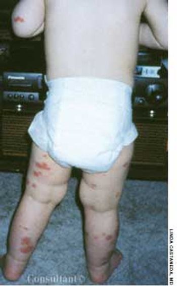 An otherwise healthy 18-month-old boy presented with palpable purpura over the legs, arms, and buttocks; his face, neck, and trunk were spared. The patient was otherwise asymptomatic, alert, and playful. His mother reported that the child had a “stuffy nose and cough” 1 month earlier.