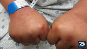 VIDEO: Note marked tumescence in patient’s hands, pitting edema in lower extremities. Does PMH contribute? Dx?