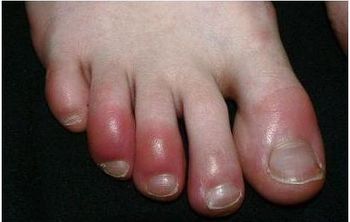 Thin dark lines beneath the fingernails are the only physical findings of note in a middle-aged man who presents with cough, fevers, and arthralgias.
