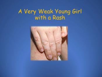 Increasing fatigue and muscle weakness now keep this 7-year-old from interaction with her peers. Get the details and a closer look at the rash. Your Dx?