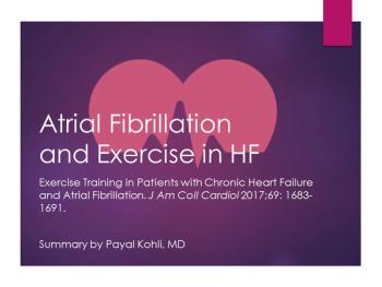 Is exercise safe in HF patients who have AF? Results of the HF-ACTION study are summarized in this short slide show.